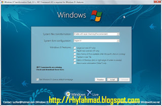 kalo ada tema yang udah terinstall sebelumnya, harus diuninstall dulu, karena Windows 8 Transformation pack ini membawa Aura.exe dan Newgen.exe, praktisnya juga dibawa oleh tema Windows 7.